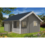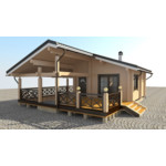 Деревянный дом из клееного бруса с террасой «Евродом» 82 м² - небольшой дом для постоянного проживания небольшой семьи. В доме есть все необходимое: две спальни, санитарный узел и просторная кухня-гостиная.